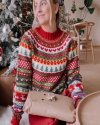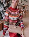 Autumn Winter Women Fashion Christmas Tree Print Crewneck Long Sleeve Knitted Sweater